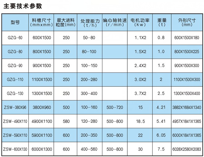 本公司生產(chǎn)的給料機(jī)系列分為激振式給料機(jī)與直線式給料機(jī)兩種。激振式給料機(jī)系列采用兩臺激振式電機(jī),用戶可自由調(diào)整給料機(jī)的振動頻率,從而完全控制石料的給料速度,保證整條生產(chǎn)線的順暢運(yùn)行。直線振動式給料機(jī),具有振動平穩(wěn),工作穩(wěn)定,壽命長等特點(diǎn)。可為碎石機(jī)械連續(xù)、均勻給料,并對物料進(jìn)行粗篩分。廣泛應(yīng)用于選礦、建材、硅酸鹽和化學(xué)工作中的碎石、篩分聯(lián)合設(shè)備中。